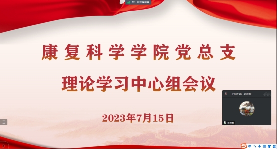 7月15日,康复科学学院党总支召开理论学习中心组集体学习会,专题学习习近平总书记在江苏考察时的重要讲话精神。会议由学院党总支书记吴洪菊主持,党总支全体委员参加。