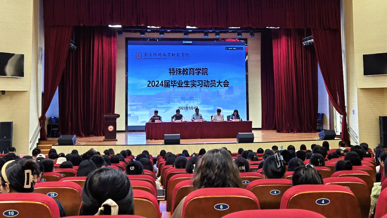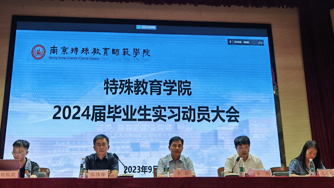 为进一步开展好2024届毕业生实习工作,指导毕业生们顺利完成校外实习阶段的实践锻炼和实习任务,2023年9月4日下午,特殊教育学院在实验实训大楼报告厅召开学院2024届毕业生实习动员大会。特殊教育学院院长李拉、副院长张伟锋、党总支副书记李鹏、年级辅导员老师元志立和解晶、兼任教务工作的青年老师刘凯毅和实验员老师陈苏婉等参加会议。学院2020级全体实习生线上线下共四百余人参加,副院长张伟锋主持本次会议。