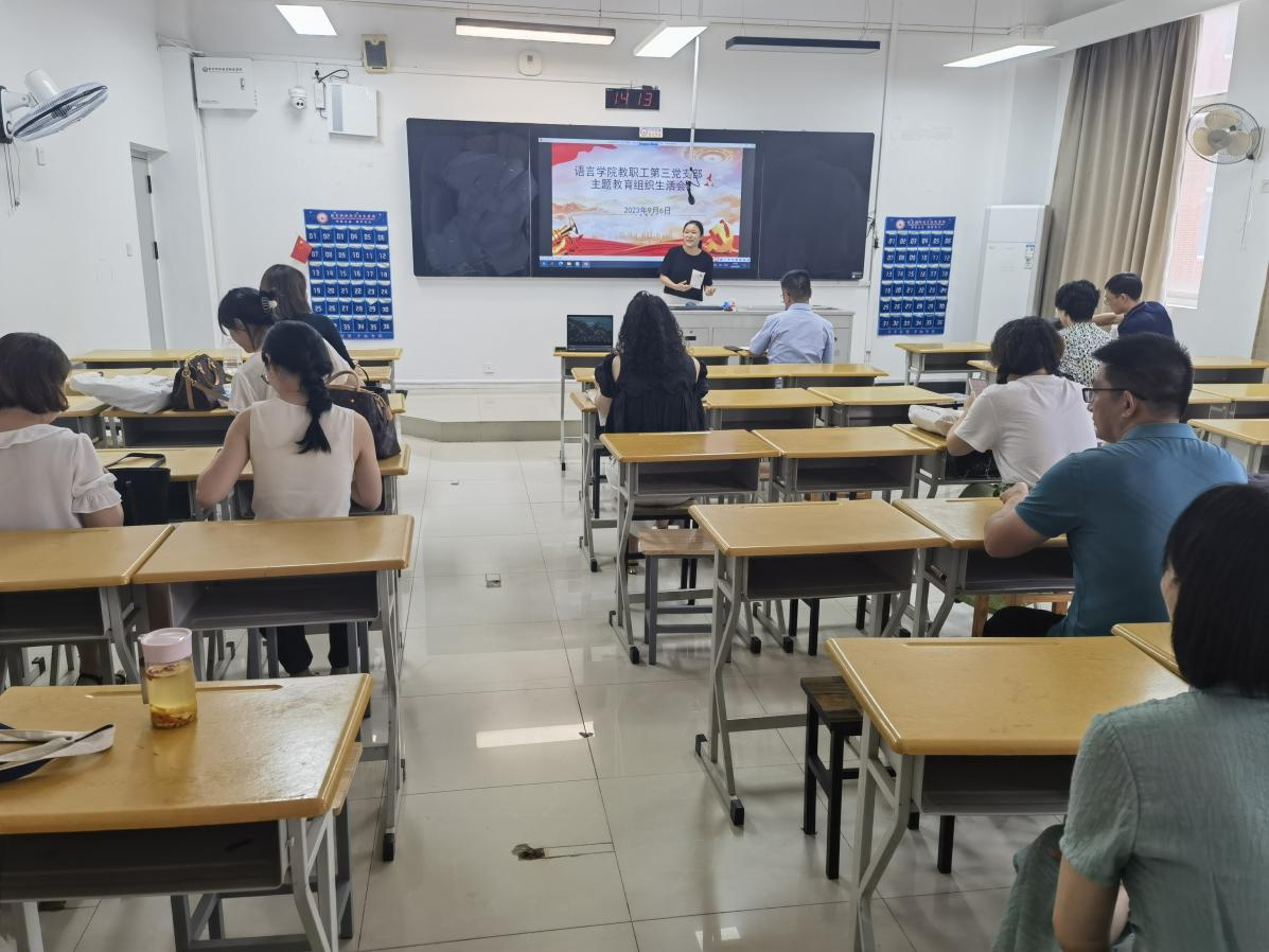 根据上级部门要求和学校党委部署安排,语言学院于9月6日召开基层党支部学习贯彻习近平新时代中国特色社会主义思想主题教育专题组织生活会。教师第一、第二、第三党支部和学生第一、第二党支部分别召开会议,学院班子成员对接支部进行指导,各支部党员参加会议。