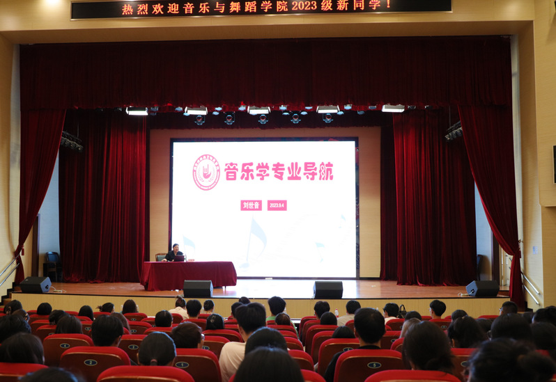 音乐学系主任刘世音于报告厅给新生讲解音乐学专业,她详细介绍了专业的师资力量、教学场所、教学成就等,从“从教”“考公”“升学”“创业”四个方面建议新生做好学习规划,着重说明人才培养目标、专业课程设置、学分学时、学位授予等问题。最后,刘世音主任对同学们寄予殷切期望:愿同学们经过大学四年的学习具备较强的音乐教学能力、艺术表达与组织能力和科研能力。