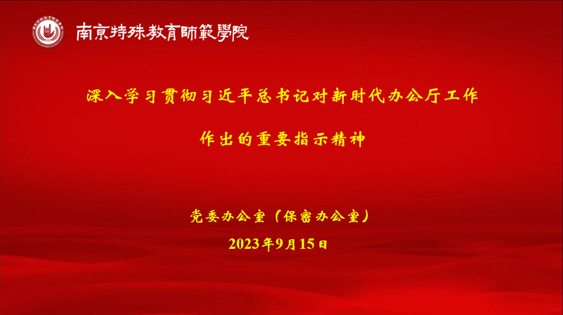 习近平总书记对新时代办公厅工作作出的重要指示精神,具有很强的政治性、指导性和针对性,我们要深入学习领会、认真贯彻落实。一是强化学习,发挥参谋助手作用。提高政治站位,胸怀“国之大者”,加强党的路线方针政策的学习和调查研究,以政治敏感性和洞察力,及时关注高等教育尤其是特殊教育与残疾人事业发展的形势变化和社会动态。二是强化督查,加强协调高效运转。办公室担负着上情下达和下情上报的职能,要发挥综合协调和桥梁纽带作用,提高办事效率和运转效能。要加强督查督办,对确定的重大事项和工作安排,确保“事事有回音,件件有落实”。三是严格要求,提高自身综合素养。要正确认识工作中苦与乐、得与失的关系。提升自身综合修养,坚持绝对忠诚的政治品格、坚持高度自觉的大局意识、坚持极端负责的工作作风、坚持无怨无悔的奉献精神、坚持廉洁自律的道德操守。