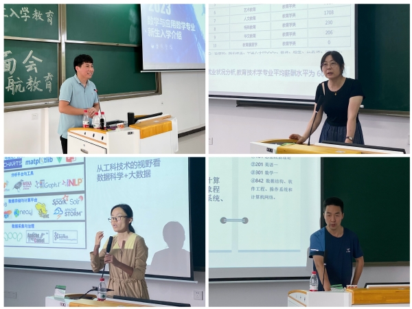 数学与应用数学专业2301班宁雨菲同学作为新生代表发言。各专业负责人分专业开展了专业导航教育,分别从专业概况、专业发展、如何学好专业课、就业导向等方面为同学们进行了详细讲解。