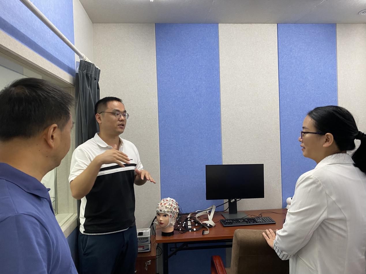 研讨结束后,一行人在李善鹏老师的带领下参观了工信部重点实验室,包括语言信息智能处理及应用实验室,以及脑电实验室和语音实验室,向大家展示了最新的数据采集技术和设备使用方法。同时,系主任汤平也为我们分享了他们在科研上开展的各项实验研究。