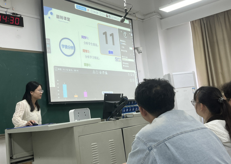 本次培训活动分两个阶段开展。第一个阶段是“智慧教研之观摩体验式培训”,教育顾问杨晓静老师对智慧教研的组织形式、操作方式进行讲解,特殊教育学院单盛楠老师以《从“第几”探索学情分析——培智学校生活数学的教学设计》为题进行智慧课堂的展示,现场观摩的老师们同步以切点观议课方式进行教研活动,实现了智慧教学与智慧教研的同步开展。课堂展示环节完成后,进入集体教研磨课环节,大家结合现场切点观议课的数据和材料展开深入的研讨交流。培训活动的第二个阶段是“智慧教研之分专业分组别演练”,老师们以系(教研室)为单位分别前往不同的智慧教室开展智慧教研,以饱满的状态投入到智慧课堂的磨课演练中,为即将到来的省智慧教学大赛全力以赴、科学备赛。