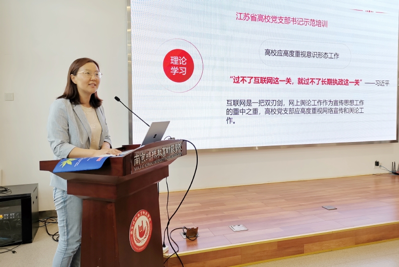 培训伊始,南京林业大学党委组织部常务副部长、机关党委书记彭斌为参训者们带来了题为“学习贯彻全国组织工作精神 加强新时代高校党支部建设”的报告,她从学习贯彻全国组织工作会议精神、新时代党的建设新要求、党支部规范化和特色化建设等三个方面向大家阐释了加强新时代高校党支部建设的重要性和必要性。她表示,欲筑室者,先治其基。基层党组织是党执政大厦的地基,作为党在高校全部工作和战斗力的基础,高校党支部直接联结着教师和学生,是落实党的教育方针政策、落实全面从严治党、坚持社会主义办学方向、落实立德树人根本任务、确保党对高校的全面领导、贯彻落实党的路线方针政策和决策部署的基础和阵地。新时代高校党支部的建设要深入探索党建与事业发展深度融合、以高质量党建引领高质量发展的方法路径,把基层党组织建设成为有效实现党的领导的坚强战斗堡垒。