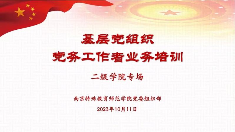 日前,党委组织部在实验实训大楼201会议室开展学校2023年下半年基层党组织党务工作者业务培训(二级学院专场)。培训由学校党委组织部副部长、党校教务长庞宙华主持,各二级学院党组织书记、副书记、党支部书记及专兼职组织员参加了本次培训。