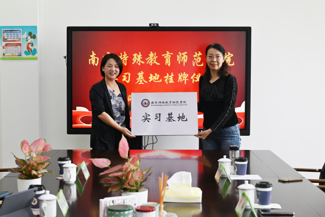金梅副院长对成佳学校对我校实习生的辛勤培养表示诚挚的感谢,并就南京特师体育学院与基层特校间开展特奥体育运动、融合教育发展、教科研合作等方面与成佳学校交换了意见。随后,金梅副院长和张春燕校长签署《南京特殊教育师范学院教育实习基地协议》并授牌。