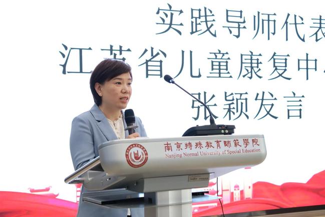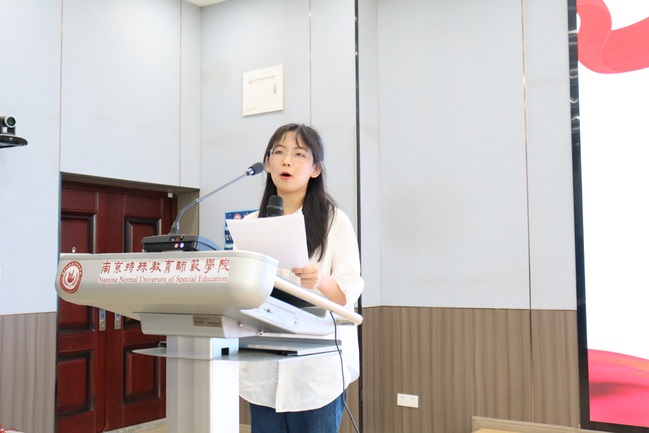 江苏省儿童康复中心张颖园长代表实践导师发言,向卓越班的全体同学表示祝福,希望同学们能学有所获,学有所成,学有所用,并对卓越班的发展作出了美好展望。姚妮老师作为理论导师代表发言,她希望同学们能保持身心的健康发展,平衡好学习与生活,同时,她代表全体导师承诺,全力支持和指导同学们的学习,帮助同学们提升专业学习效果,共度美好三年时光。卓越班学生代表郭书畅同学首先向全体领导与导师们的辛勤付出表达了感谢,她倡议同学们在未来的日子里珍惜机会,明德至善,博学笃行,追求卓越。