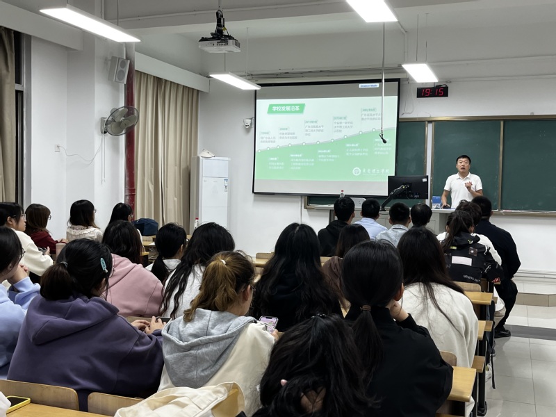 刘海波老师首先向同学们介绍了东莞理工学院的基本情况及考研的相关政策,并简要介绍了学校研究生人才培养、奖助体系等方面情况。还向同学们介绍了考研相关专业的参考书目、报考的流程、考试的方式及复试中应注意的问题。