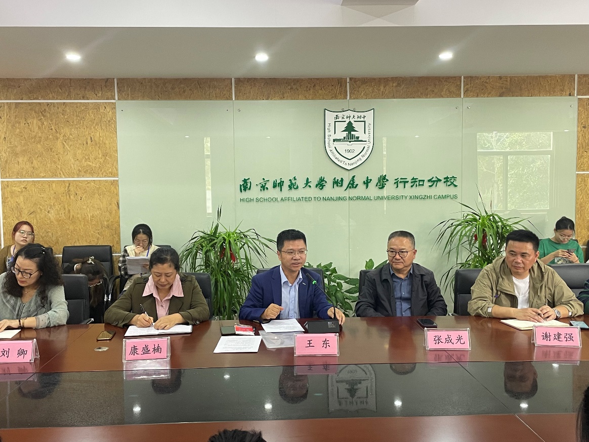 语言学院执行院长王东表示,感谢南京师范大学附属中学行知分校为学生提供教育实习、见习的平台和机会,并希望以实习基地为契机,与行知分校在相关学科教学和专业研究等领域深化合作,优势互补,共同发展。王东院长说:“我们与教学一线要像石榴籽一样紧紧抱在一起,密不可分。”同时,王东院长对见习学生提出期望,希望见习学生珍惜机会,做到“多看,多听,多想”。