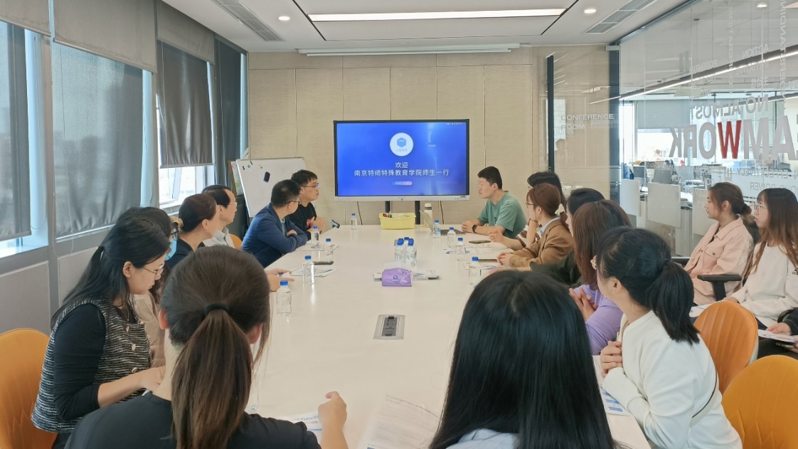 师生一行还来到上海市柒维信息技术有限公司参观考察,了解该公司在特殊教育领域的信息化支持技术并研讨产教融合项目。该公司负责人胡总对公司发展历程、主要业务模块以及在特殊教育领域的技术研发情况做了介绍和展示,让我们对“互联网+”及人工智能时代的科技赋能特殊教育有了更直观的认识。双方还就产教融合项目建设、毕业生实习与岗位就业开展研讨,达成了初步合作意向。