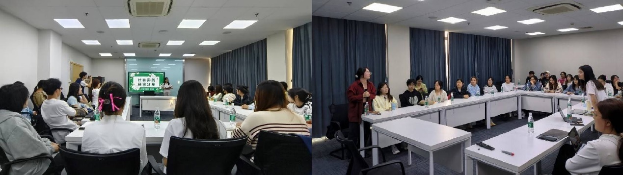 在教师组学习讨论的同时,学生组也和特殊教育学系的大三本科生开展交流活动。该系的大三同学展示了关于院系概况、社会实践、对外交流、跨年级组队等方面的内容,尤其是符巧巧同学关于无障碍博物馆的介绍,让大家认识到如何运用特殊教育专业知识来促进残障人士融入日常文化生活;潘逸晨同学关于跨年级组队的想法也让大家汲取到同年级组队探究新知的经验和启示,为今后的创新创业训练提供了新思路。