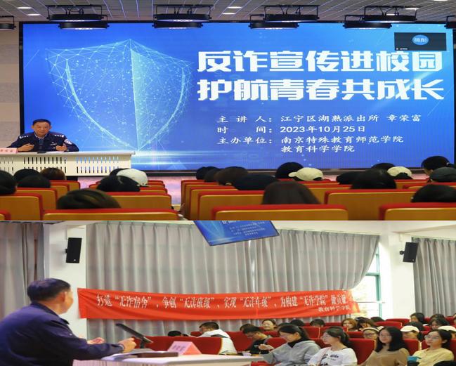 反诈讲座宣传,全覆盖。学院邀请江宁区湖熟派出所章荣富警官进行反诈主题讲座,讲座以线上和线下相结合的方式展开。章警官用生动的案例和深入浅出的讲解,让学生们对网络诈骗有了更直观、更深入的了解。讲座中,章警官还分享了一些实用的防骗技巧,并指导学生们如何使用全民反诈APP,提醒大家在日常生活中提高警惕,避免被骗。