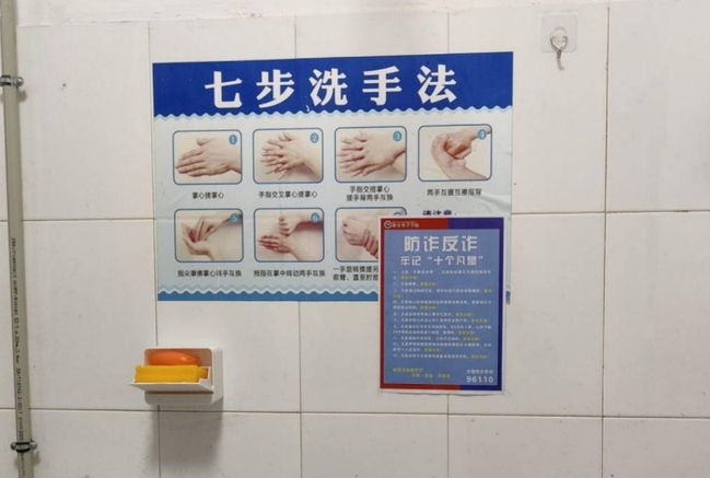反诈海报宣传,常提醒。宿舍是反诈宣传的重要阵地。学院以宿舍为单位,在各个宿舍的洗漱池位置张贴了反诈宣传海报,使同学们在洗漱的同时可以记忆相关反诈知识。同学们纷纷表示这样的宣传方式既直观又易于警醒自身,有助于提高自身的防骗意识和能力。