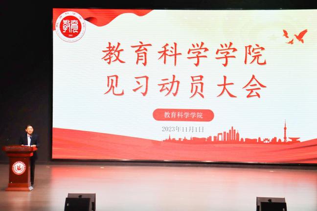 为充分调动同学们参加教育见习的积极性和主动性,巩固理论知识学习,提高综合实践能力,教育科学学院于11月1日下午在大学生活动中心报告厅举办见习动员大会。教育科学学院党政领导班子、各年级辅导员、见习带队老师以及21、22级同学们参加大会,本次会议由张丽莉副院长主持。
