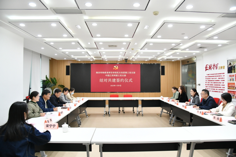 朱正东向与会人员介绍了我校的基本情况。他表示,南京特师是一所充满温度、富有情怀、勇于担当的高校。从中师、大专到本科,南京特师历经了跨越式的发展,这是历代南特人共同努力的结果。一路走来,南京特师培养了大批优秀学子服务特殊教育事业,被誉为“中国特教师资培养的摇篮”。朱正东期望通过党支部的共建活动,双方能够加强合作,并借助中国江苏网强有力的宣传优势,使学校的优势和特色得到更广泛的传播。