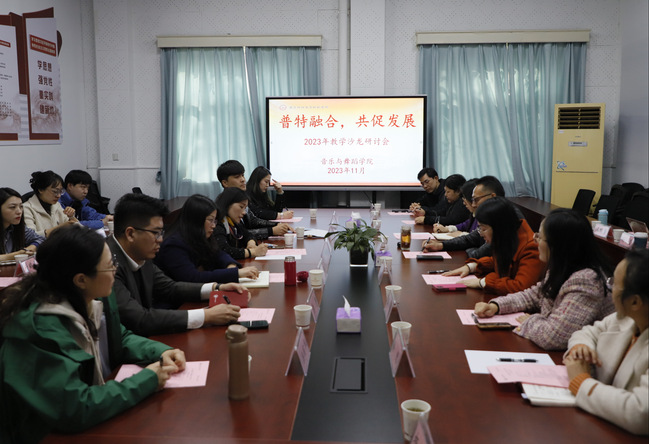 为进一步推动教师成长、提高教学质量,给学生提供更优质的教育资源,音乐与舞蹈学院日前在博韵楼209举办以“普特融合,共促发展”为主题的教学沙龙。沙龙由音乐与舞蹈学院院长张强主持,教务处处长范莉莉、南京市察哈尔路小学校长周笑梅、迈皋桥小学教育集团副校长林艳、徐州铜山特殊教育学校校长王龙利、南京怡享康健有限公司负责人常亮、浙江特殊教育职业学院艺术系艺术技能教研主任柴丽华、南京天正小学音乐老师谢婷,音乐与舞蹈学院党政班子、系室主任及多位教师参加了本次活动。