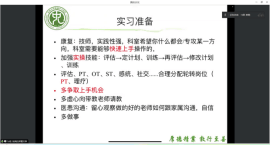 单娟同学是康复科学学院2020届毕业生,在校时担任四年团支部书记,目前在中大医院儿童康复科工作。单娟从自己的求职经历说起,分享了自己在求职过程中经历过的困难与疑惑,结合自己的经验告诫同学们只有清楚自身情况尽早明确职业目标,积极提升求职技巧并加强自身优势,才能早日寻找到心仪的单位。她从就业方向的选择、实习准备、寻找招聘信息、简历的制作、笔试面试的准备等方向深入浅出地阐述了同学们在求职之路上应做好的各方面准备。单娟以真诚坦然的语言,使同学们对就业准备以及就业形势有了更清晰的认识。在会议最后,单娟也分享了心态调整以及复盘分析的方法,期望学弟学妹们在求职过程中增强自身优势,最终找到心仪的工作。