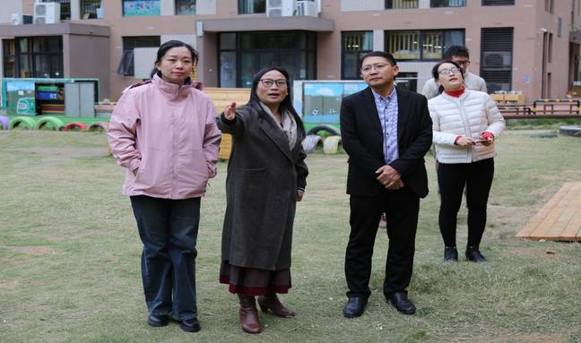 教科院一行在奇色花幼儿园创始人蔡蕾的带领下参观了幼儿园的户外环境,并了解了每一处区域环境创设的原理和意义。刘新学院长对奇色花幼儿园的环境创设给予高度评价,表示每一处环境都充分利用了空间,并充分发挥了它们的教育功能,同时认为奇色花幼儿园是第一个设计视障人士行走体验通道的幼儿园,且做了很好的无障碍环境设计。