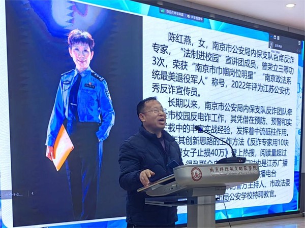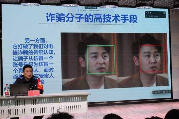 在江宁校区,刘凯警官围绕电信诈骗的含义、特点、防诈措施与防诈技巧四个方面展开讲解,依托自身工作经验,向同学们展示了诈骗分子多变的诈骗手段,将不同类型的骗术与身边真实案例相结合,深刻剖析犯罪分子实施诈骗的惯用手法技俩,同时讲解防诈技巧,提出针对性的防范措施,呼吁广大学生提高防范意识,保护好自身财产及人身安全。