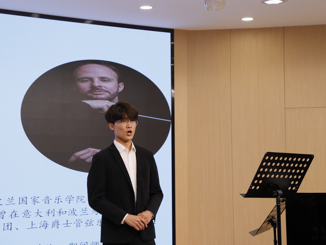 在活动进行中,声乐老师和学生们在舞台上展示自己的专业水平,发表了对歌剧艺术的见解,师生与罗伯特·菲奥雷教授一起讨论了关于什么是音乐、怎么展现出音乐的色彩、如何处理歌剧中的强弱等问题,现场气氛非常活跃!罗伯特·菲奥雷教授给予了专业的指导与建议。他说:“一个音乐家,要听音乐,感受音乐才能够展现音乐。”