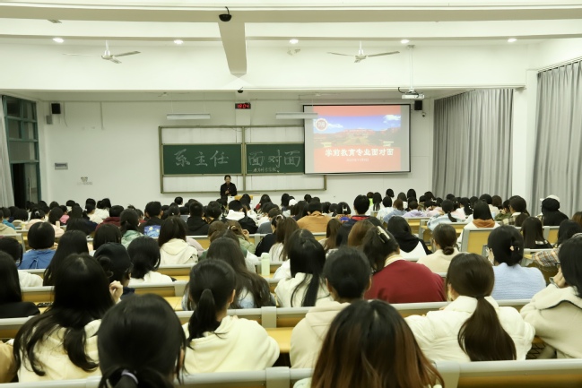 近日,教育科学学院在江宁校区C201举行“系主任,面对面”交流活动,学前教育专业系主任金玲老师与学前教育专业的学生齐聚一堂,与大家深入讨论交流在专业学习中的感触和困惑。