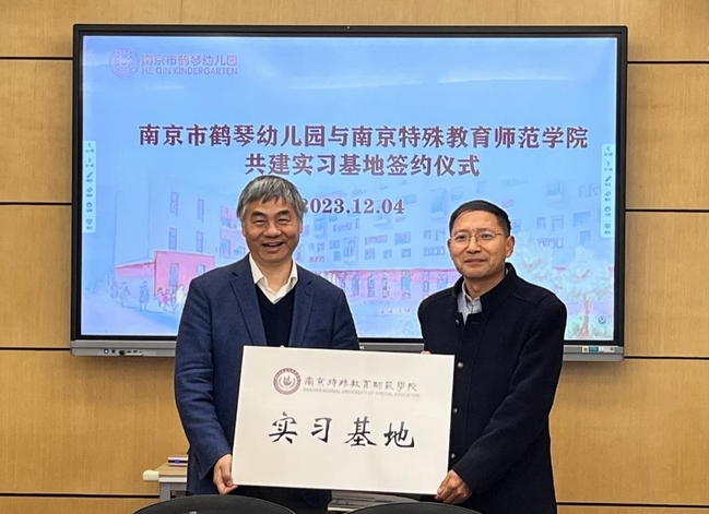12月4日下午,教育科学学院在南京市鹤琴幼儿园举行实习基地签约授牌仪式。南京市鹤琴幼儿园园长张俊、党支部副书记徐悦、保教主任余静雯、园长助理杨柳、教研主任林琳、教师发展部部长邸征宇,教育科学学院院长刘新学、副园长张丽莉、教师杜冰玉参加本次实习基地签约挂牌活动。