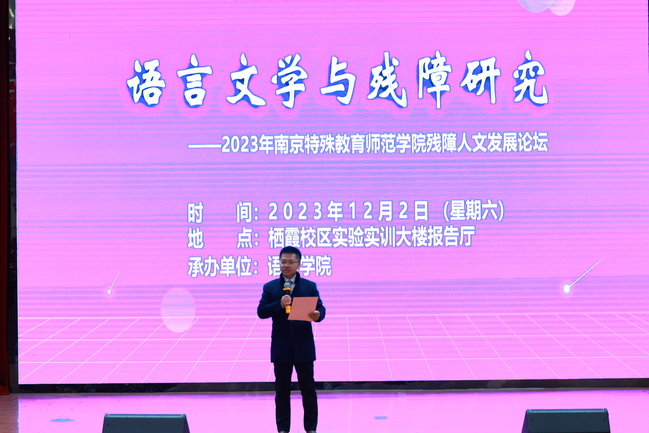 日前,由我校主办、语言学院承办的“语言文学与残障研究”——2023年南京特殊教育师范学院残障人文发展论坛顺利召开。论坛汇集了国内残障人文研究的专家学者,旨在深入探讨中国式现代化进程中语言文学助推中国残疾人事业发展的有效路径,开展语言文学与残障的交叉创新性研究。