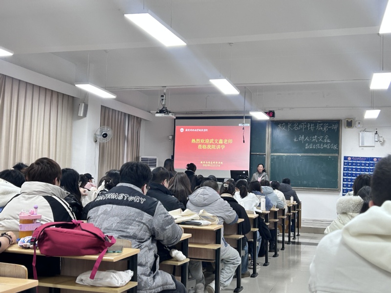 12月13日下午,为了让学生掌握中学一线的教学要求和实践前沿,数学与信息科学学院邀请南京科利华中学教学名师武文鑫老师为大三师范生分享师范生从教为师的路径。
