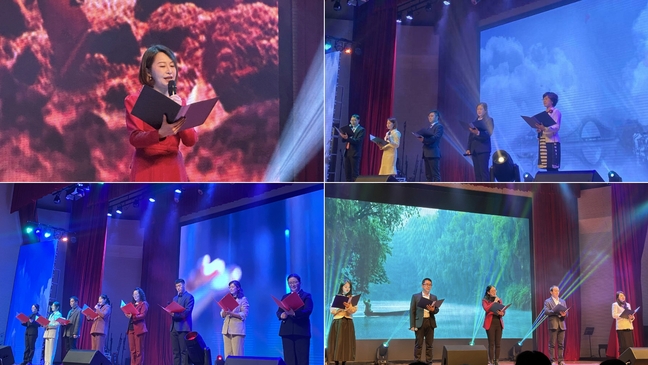 诵读之声不绝于耳,强国之音掷地有声。字字铿锵、句句豪迈,一声声激扬人心的朗诵,一次次真情实感的流露,饱含对华夏的忠诚,诠释着对祖国的爱恋。朗诵者表演到位,台风大方,感情充沛,感染力强。无论是充满生命激情的《吹号者》、富有生机韵致的《江苏》,亦或是独具雅致风味的《吴韵汉风的故乡》、汇聚民族灵魂的《诗意中国》,都呈现出不朽的盛世华章,传递着拳拳爱国之情。