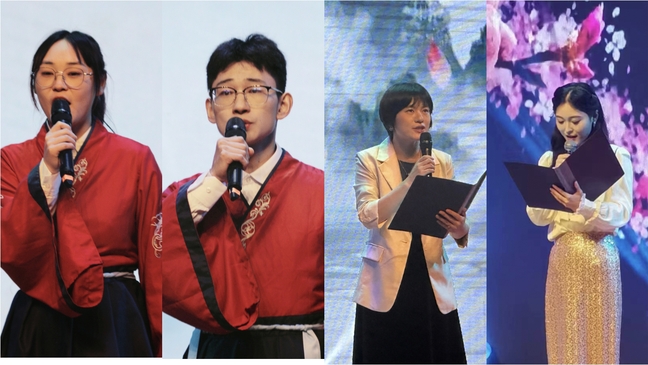 在第三篇章“博爱塑魂”,一篇《星星变奏曲》寄托了迷惘中的思考与希望,一篇原创诗词《我们都是时代追梦人》怀揣着绚烂的诗与远方,一篇《传承》燃起生生不息的薪火。现场气氛愈发热烈,观众们沉浸在博爱文化的氛围之中。朗诵者用文学之火,展现博爱文化的深厚内涵,传承源远流长的华夏文明。