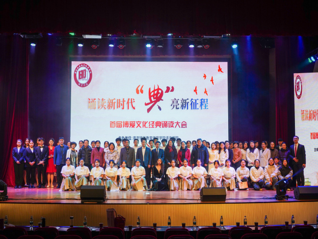 为了传承中华优秀传统文化、弘扬民族精神,提高大学生的人文素养与审美情趣,营造朝气蓬勃的的校园文化氛围,展现师生的风采与博爱情怀,12月14日晚,语言学院首届博爱文化经典诵读大会在栖霞校区实验实训大楼报告厅举行。校党委常委、党委宣传部部长、对外合作与交流处处长朱正东,党委学生工作部、学生工作处副处长朱玉飞和各二级学院负责人应邀参加现场活动。
