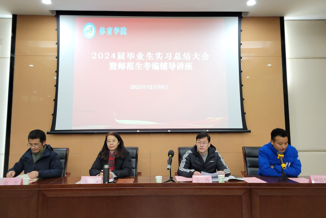 12月15日上午,体育学院召开2024届毕业生实习总结大会,体育学院领导班子成员、实习指导老师和2020级全体学生参加。会议由体育教育系主任麻晨俊主持。