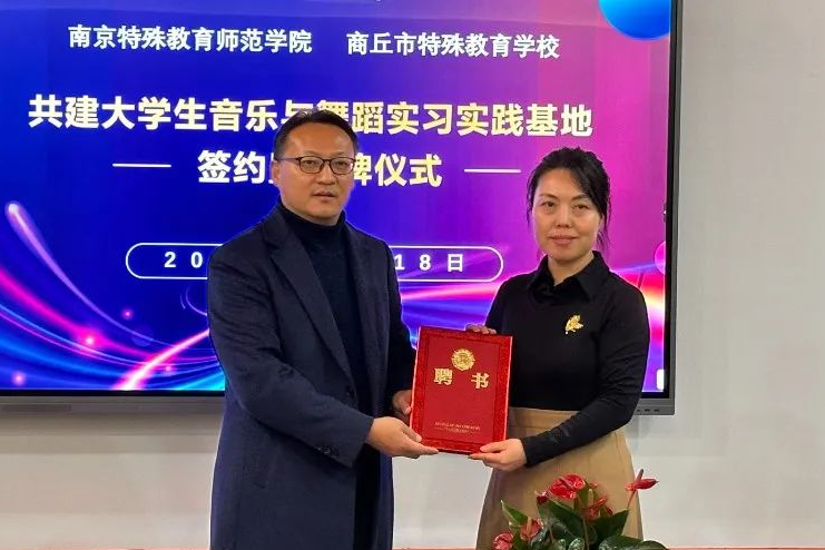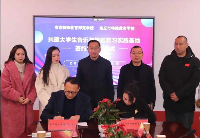 为加强校校(校企)合作,搭建教育教学实习实践平台,我校音乐与舞蹈学院于2023年12月18日与商丘市特殊教育学校签约,正式建立我校相关专业的大学生实习实践基地。音乐与舞蹈学院张强副院长(主持工作)、合唱与指挥专任教师沈钰、舞蹈专任教师揭思妤等参加签约仪式。商丘市教育体育局总督学韩先领、商丘市教育体育局基础教育科科长王洪亮、商丘市教育体育局基础教育科特教专干周锟以及商丘市特殊教育学校校长赵凤英、副校长魏冬梅、孙丽丽等参加仪式。