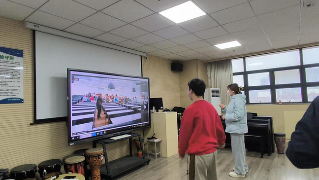 随后,学院音乐治疗系学生以及日本帝京科学大学的同学们针对特殊儿童音乐治疗的活动设计进行交流与互动,分别进行了音乐治疗的活动演示,活动过程欢快有趣,获得老师、同学一致好评。