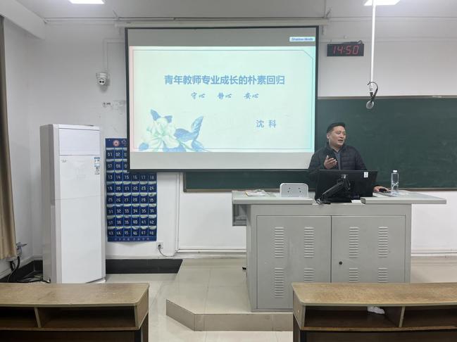 沈科老师结合自身经验和实践所得,向广大师生分享了教师成长之路,有力地指出面临当下的人口形势,师范生更应刻苦学习,培养过硬本领,做一名为人民服务的“好”老师。沈科老师从“守心”“静心”“安心”三个方面着手,分别强调了有关小学教育的以下三点内容。“教育为人生”是青年教师专业成长的目标回归,“教书育人真本领”是青年教师专业成长的内容回归,“安静扎实且保持纯粹”是青年教师专业成长的态度回归。“真正走得远的是众人同行。”就专业教师如何做到朴素回归的问题,沈科老师明确指出要做到理解学科、理解教学、理解学生、理解技术,坚持修炼内功,站稳讲台。为自己做出清晰的成长规划,例如各项竞赛的参与、论文的研究与撰写、公开课的参与与举办等,做到分层达标,磨练自己。