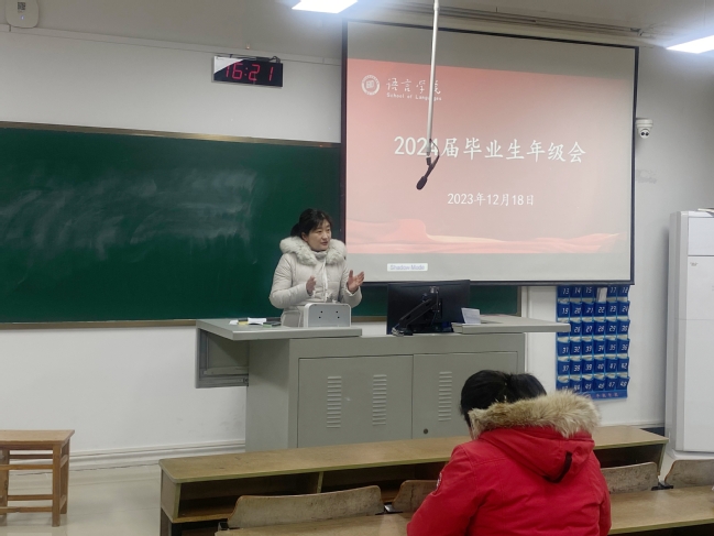为切实推进就业工作顺利进行,帮助毕业生们树立更清晰的就业观,日前,语言学院组织召开2024届毕业生年级会。活动由辅导员何江岳主持,学院党总支副书记张冬冬、辅导员郑丹丹以及2024届毕业生参加。
