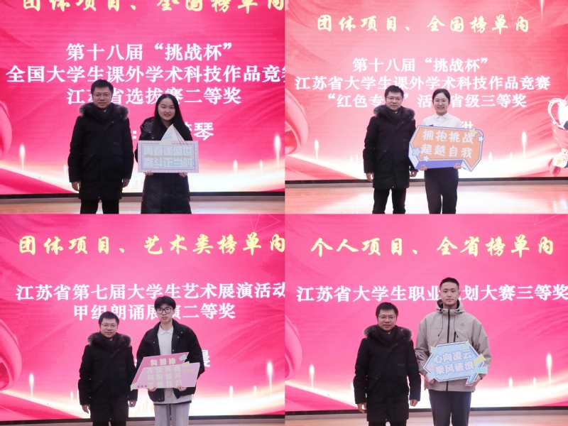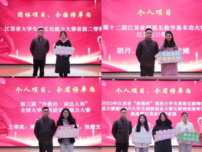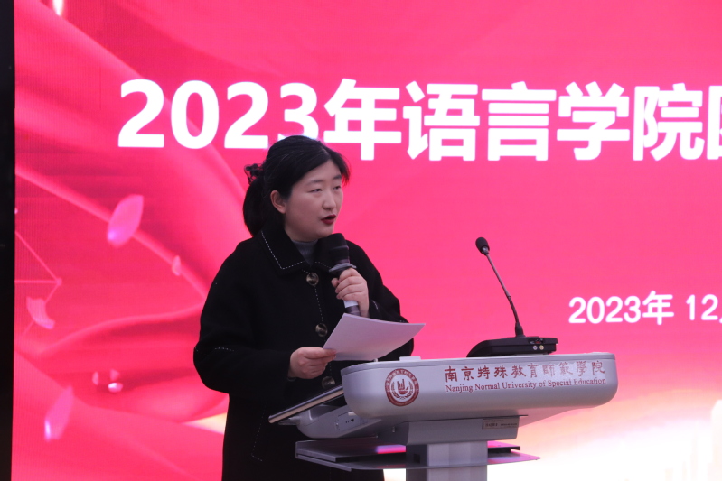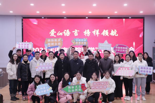 丁祖保书记作总结发言。他对获奖集体和个人表示衷心的祝贺,也感谢各指导老师及学生团队的努力与付出。随后,他主要围绕就业和招生两方面展开讲述,并结合具体的事例,总结了2023年学院在就业、招生等方面的发展与突破。丁书记表示,师生的共同努力为语言学院高质量开展工作提供了有力支持,生动诠释出“爱in语言”的主题精神。他给学生提出三点要求:一是要树立终身学习的理念,特别要学“真”;二是要学会做人,学做善人;三是要学会生活,善于发现生活中的美好,成为一个真、善、美兼具的社会人。