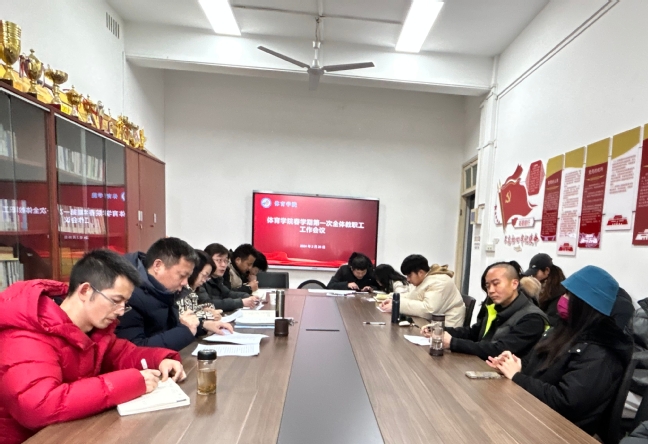 律回春晖渐,万象始更新。为全面做好新学期学院工作,明确教职工各项工作职责与目标,确保学院工作有序、规范地开展,2月25日上午,体育学院召开春学期首次全体教职工大会。学院全体教职工参加会议,会议由体育学院主持工作副院长金梅主持。