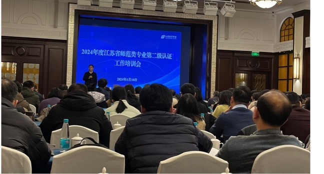 2024年1月10日,葛修娟主任及万谊副主任带队参加江苏省师范专业认证工作培训会,学前教育专业认证负责人徐莉、金玲及成思粤等参加培训。
