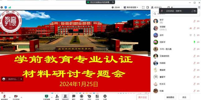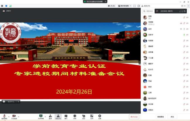 2024年2月26日晚,教科院在线上召开学前教育专业认证专家进校考查工作部署推进会,教科院领导班子及全体教师参加会议,会议由徐莉副院长主持。