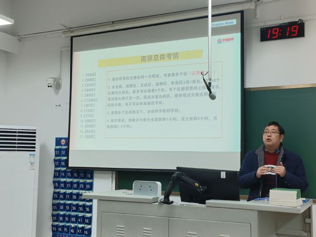 毛伏进老师从三个方面阐述当前江苏省总体考情、江苏省各市的校招和社招流程及区别,提供了一些参加校招的方法,介绍并对比了江苏各市教编考情,提醒同学们要根据自身情况选择合适的报考点。他还从公共知识和学科知识两方面来介绍教编考试内容和江苏教编考试面试形式,使在场同学对考编有了更加深刻的认识。