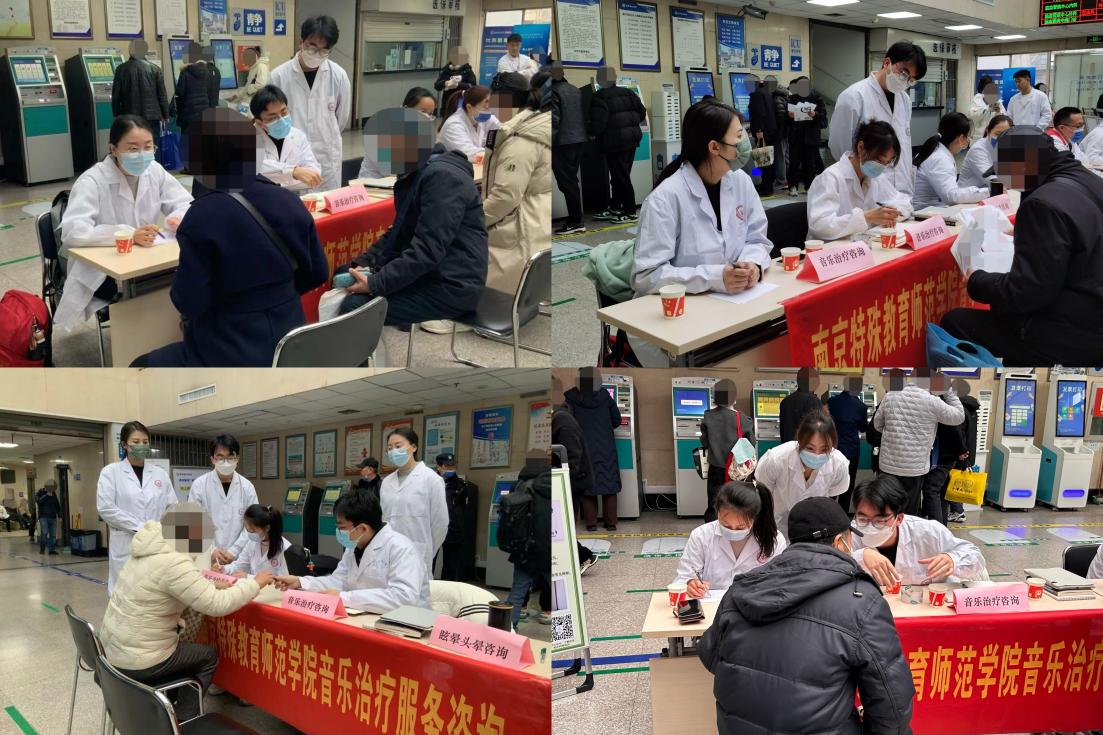 为进一步提升音乐治疗系学生专业水平能力,了解市场需求,同时推广音乐治疗专业发展,3月4日上午,音乐与舞蹈学院音乐治疗系主任段冀州与专业教师齐若雯,带领四名音乐治疗专业学生前往鼓楼区南京市脑科医院举行“3.3爱耳日”义诊活动,为在场群众提供音乐治疗咨询服务。