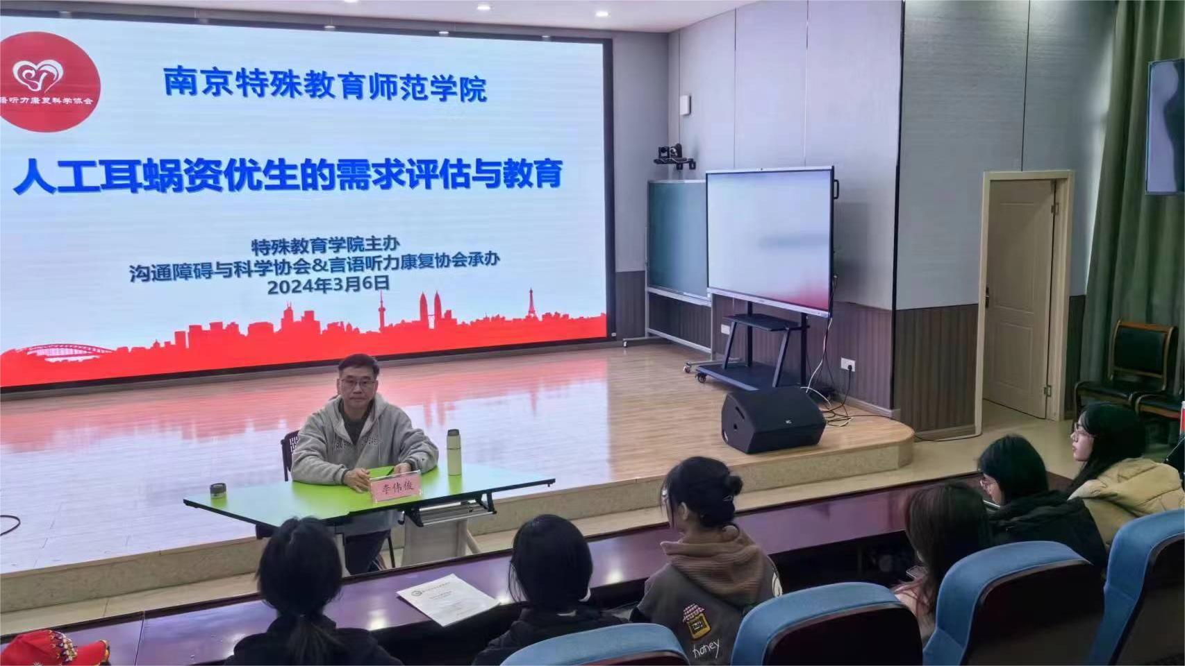 结束讲座之后,李伟俊教授分享了自己从事人工耳蜗孩子研究的经历,举办“人工耳蜗资优生的需求与教育”沙龙。特殊教育学院副院长张伟锋、沟通障碍与科学协会部分成员和其他感兴趣的学院学生参加。