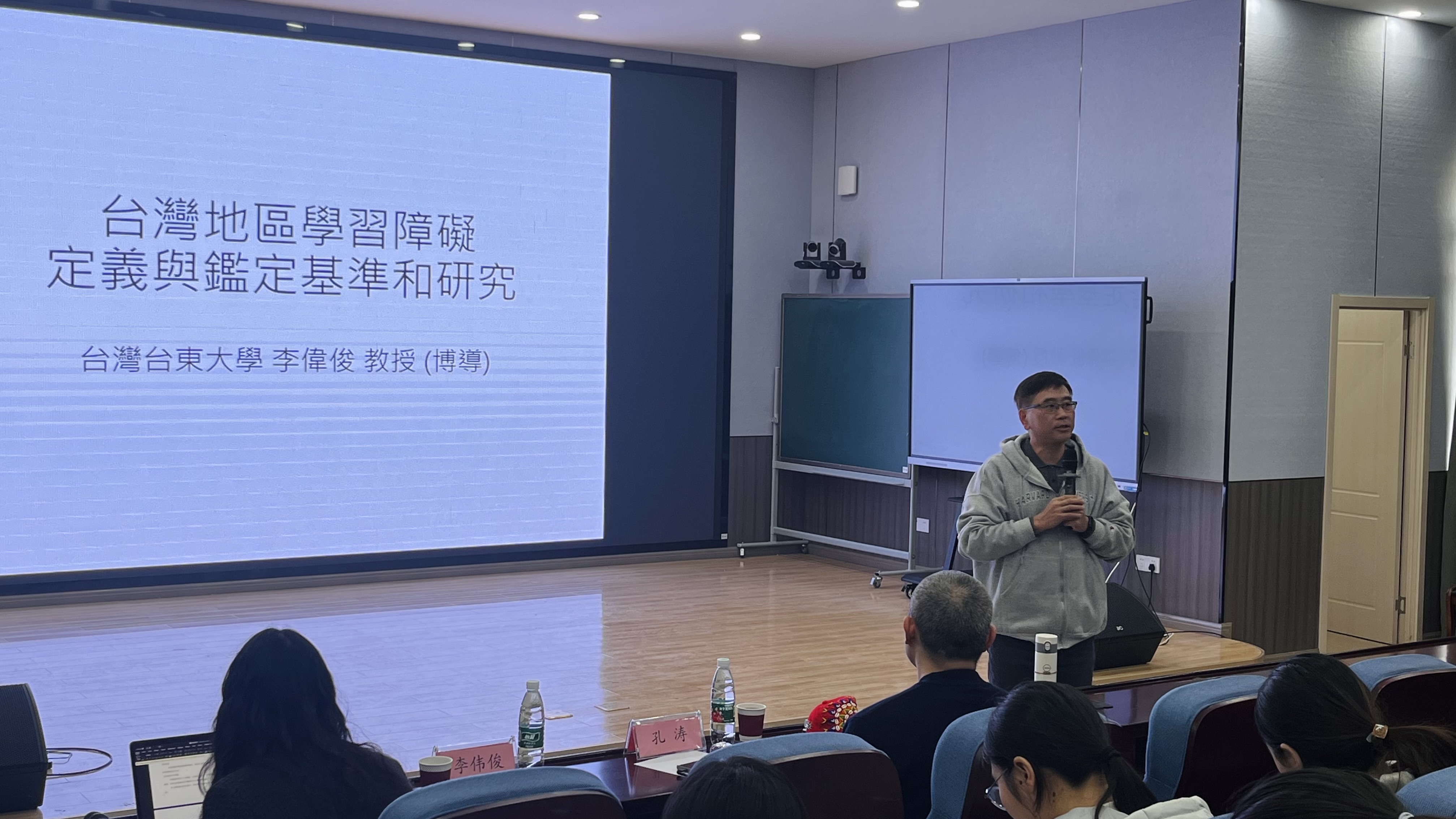 为加深学生对特殊教育的理解,扩展专业视野,3月6号下午,特殊教育学院在博远楼106举办了一场面向特殊教育专业师生的学术讲座。本次讲座邀请了我国台湾地区教育学领域的资深专家——台东大学李伟俊教授,为学院师生带来了一场题为“台湾地区学习障碍定义与鉴定基准和研究”的讲座。济南市锦屏幼儿园教师孔涛、特殊教育学院教师尚海艳、韩晓庆及21、22级特殊教育专业学生参加,本次讲座由张笛博士主持。