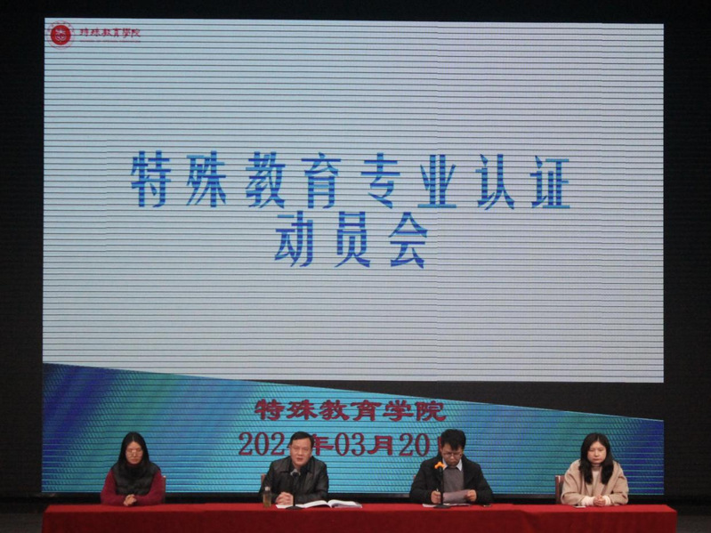 为迎接特殊教育专业认证,营造迎评氛围,特殊教育学院于3月20日下午在大学生活动中心召开特殊教育专业认证学生动员会,学院党总支书记章小军、党总支副书记李鹏、辅导员解晶和李欣璟以及特殊教育专业学生参加。动员会由党总支副书记李鹏主持。