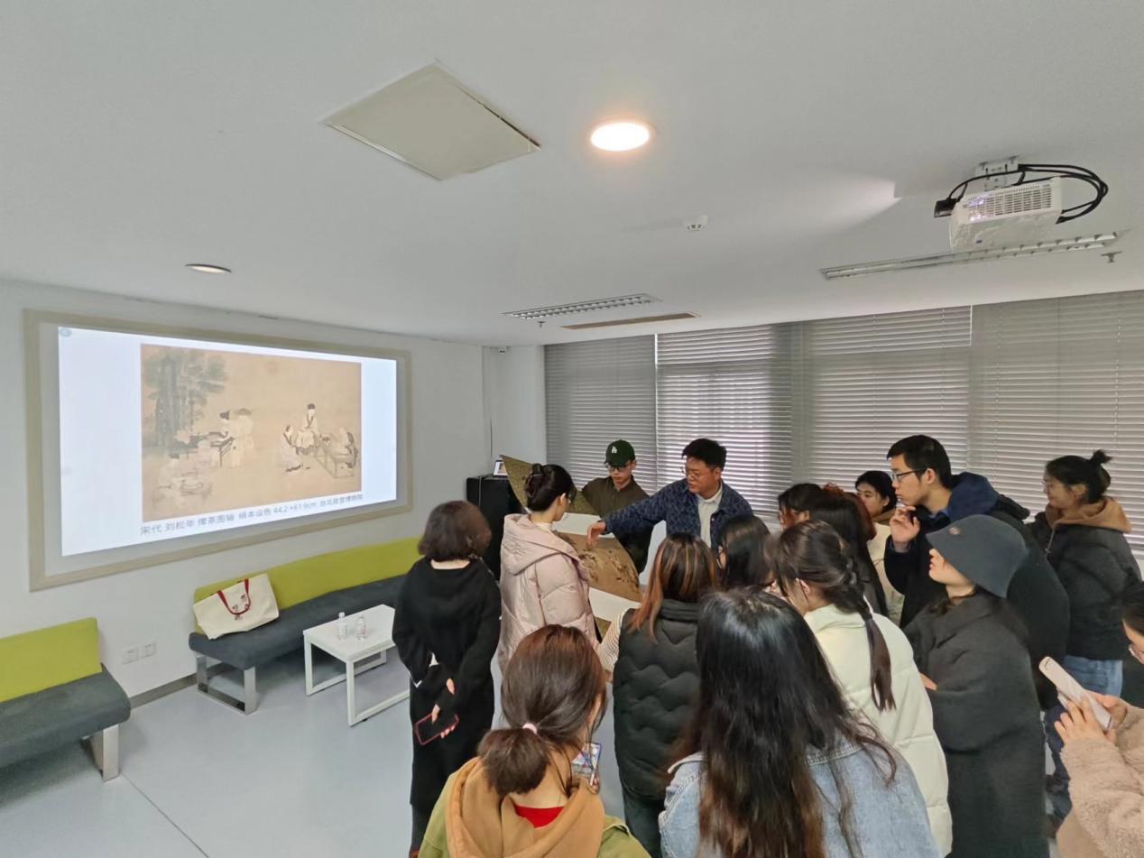 林国伟讲师以一副古画复制画为讲解实例,同学们纷纷走上前认真观察并积极参与讨论。讲座的尾声,林国伟讲师向同学们详细介绍了《Artlib世界艺术鉴赏库》数据库的使用方法,鼓励同学们在今后的学习中充分利用数据库资源。