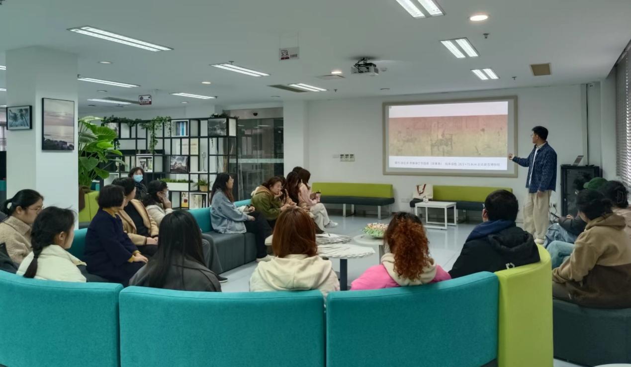 讲座中,中国美术学院、《Artlib世界艺术鉴赏库》专业讲师林国伟以多件传世名画为切入点,通过图史结合的方式,对中国古代茶文化发展史进行讲解,为同学们讲述了有关茶的历史渊源、茶艺器具、点茶方式等知识,同时还分享了一些与茶文化相关的中国传统文化名人及故事。