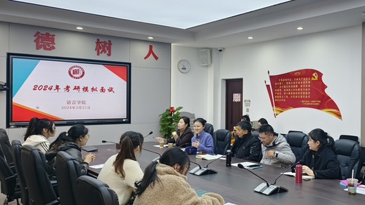 语言学院按照学生报考专业,将学生分为中文组和英文组举行考研模拟面试,学院领导班子全体成员参与到模拟面试工作中。中文组邀请马克思主义学院副院长荣霞、专任教师李卫娟,语言学院专业教师潘望和刘洁四位老师作为面试考官,为学院报考马克思主义理论、中国古代文学的学生提供结对指导;英文组由姚晓菊、陈刚、沈一然等专业教师担任面试考官及结对帮扶教师,为报考英语相关专业和教育学专业的学生提供帮助。模拟面试主要从英语表达能力、专业基础知识和综合运用知识等多方面对考生进行综合考察,对同学们回答问题的流畅度等方面进行了指导。面试考官和结对帮扶教师们结合同学们面试答题的表现,给出具体的改进建议。
