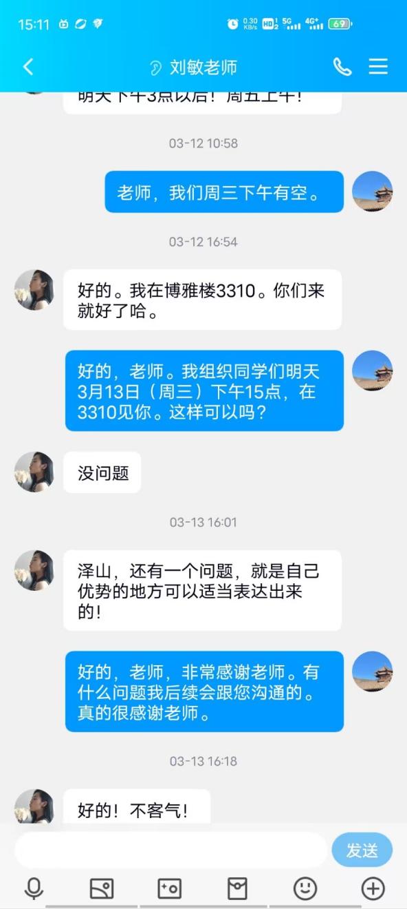 除了干货满满的考研经验分享,康复科学学院、教育科学学院、数学与信息科学学院等学院均安排老师为学生进行一对一帮扶指导。康复科学学院还邀请专业老师开展面试礼仪指导,帮助学生在面试中更加得体大方地展现自我。教育科学学院的辅导员老师则针对每个学生的具体情况,提供个性化的心理支持和建议,帮助学生调整心态,增强信心,以最佳的状态迎接考研复试的挑战。